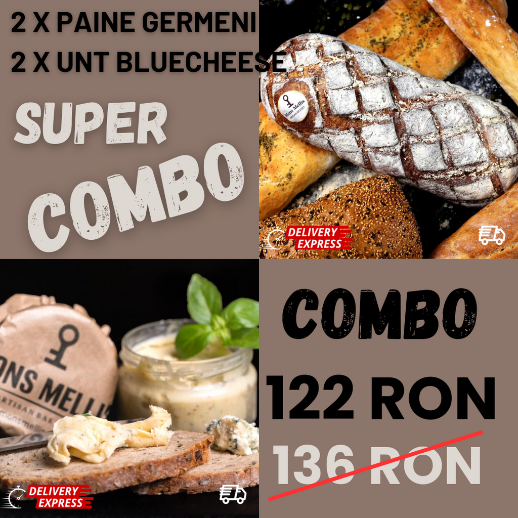 Achiziționând combo-ul, economisești 14 lei față de cumpărarea individuală a celor două unturi bluecheese și a celor două pâini de secară cu germeni. Astfel, beneficiezi de un raport excelent calitate-preț.
